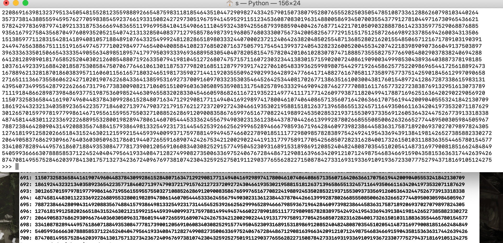 输出了斐波拉契700位,数据还行,就是太慢了。