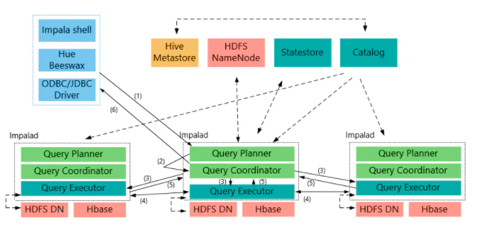 Impala集群有三个重要的组件,他们分别是Impala Daemon, Impala Statestore和Impala Metastore
