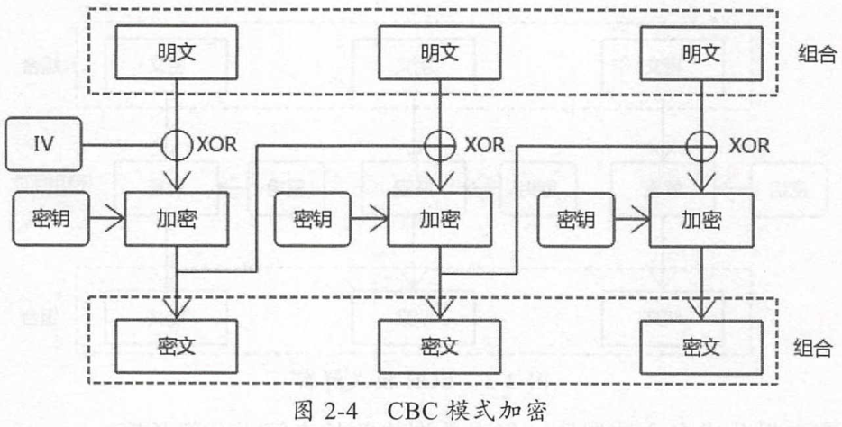 引入初始化向量,在加密前对第一个块进行混淆,用加密结果对下一个块进行混淆,初始化向量是一个随机数