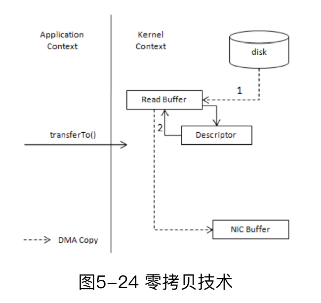 从上面的过程可以看出,数据平白无故地从内核模式到用户模式“走了一圈”,浪费了 2次复制过程:第一次是从内核模式复制到用户模式;第二次是从用户模式再复制回内核模式,即上面4次过程中的第2步和第3步。而且在上面的过程中,内核和用户模式的上下文的切换也是4次。