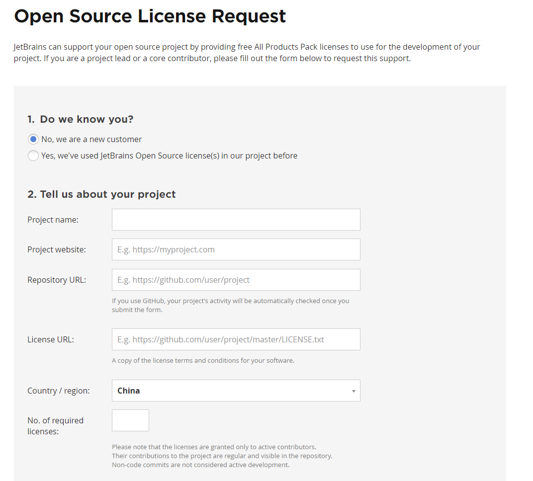 换句话说,只要你有一个在过去 3 个月内定期提交的开源项目,且非商业模式,你就可以获取JB的License