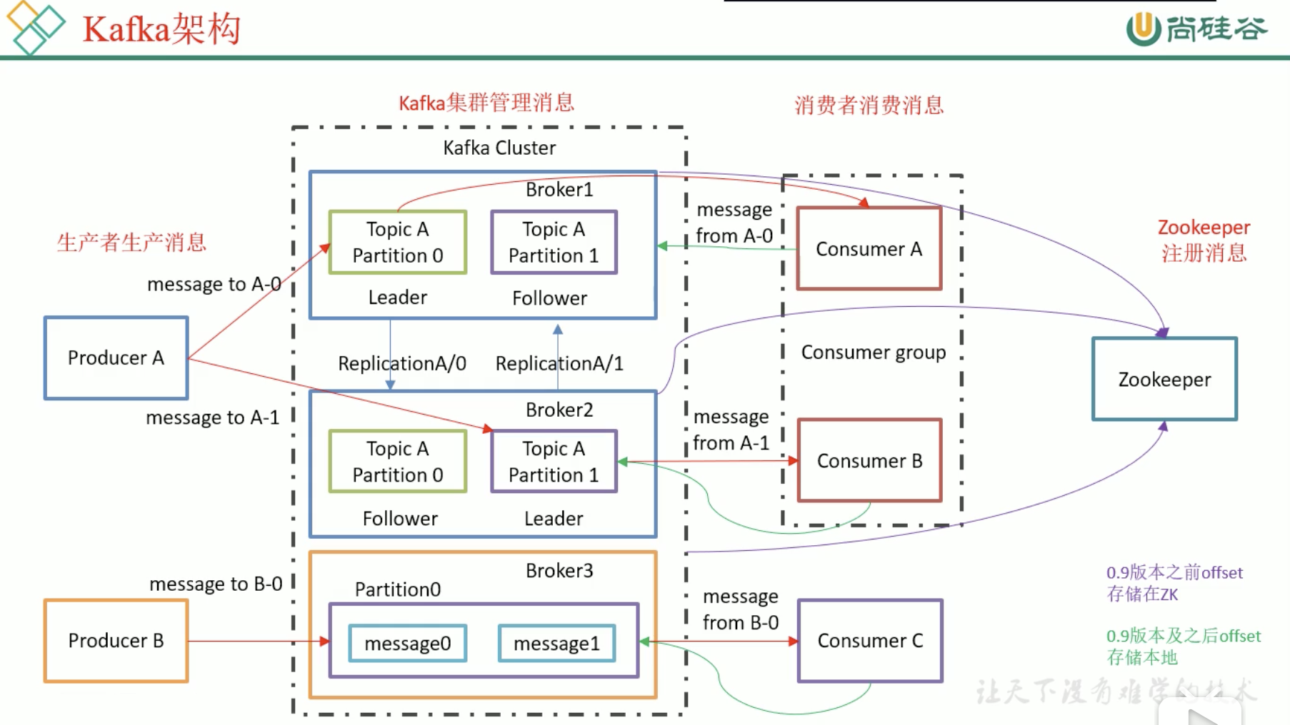 offset维护 按照消费者组、主题、分区来维护offset,不能按照消费者维护,要是这样就不能让消费者组具有动态性质了 进入zk中